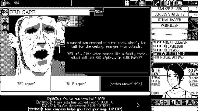 WORLD OF HORROR plunges players into the eerie town of Shiokawa, Japan, where the Old Gods are stirring and strange, unsettling phenomena grip the residents. Set against a backdrop of hospitals, abandoned classrooms, quiet apartments, and shadowy forests, the game weaves a chilling narrative that blurs the line between reality and cosmic madness. Players must confront the creeping apocalypse by navigating a roguelite world filled with turn-based combat, difficult decisions, and unpredictable encounters with nightmarish creatures inspired by the unsettling art of Junji Ito and the cosmic dread of H.P. Lovecraft. As you investigate a series of randomized mysteries, you’ll invoke dark rituals, uncover cryptic clues, and solve puzzles that challenge both mind and sanity. The game offers 14 distinct characters, each with their own story, and a variety of investigations that lead to multiple possible endings—if you survive long enough to see them. Progression is shaped by your choices and the roguelite structure, adding tension and replayability to every playthrough. The experience is enhanced by a haunting chiptune soundtrack and a stark, 1-bit art style created entirely in MS Paint, delivering a unique aesthetic that perfectly complements the unsettling atmosphere of this cosmic horror RPG.